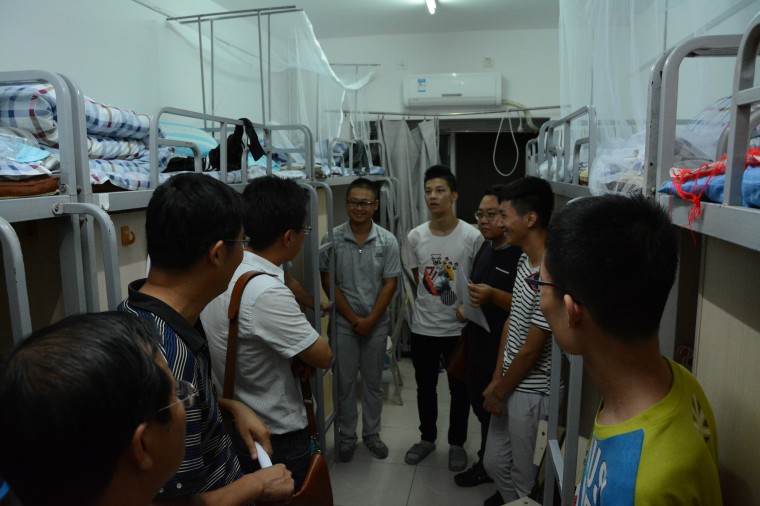 2016年8月27日19时,学院领导为了了解新生入住情况,关心同学,进行了新生宿舍的走访。